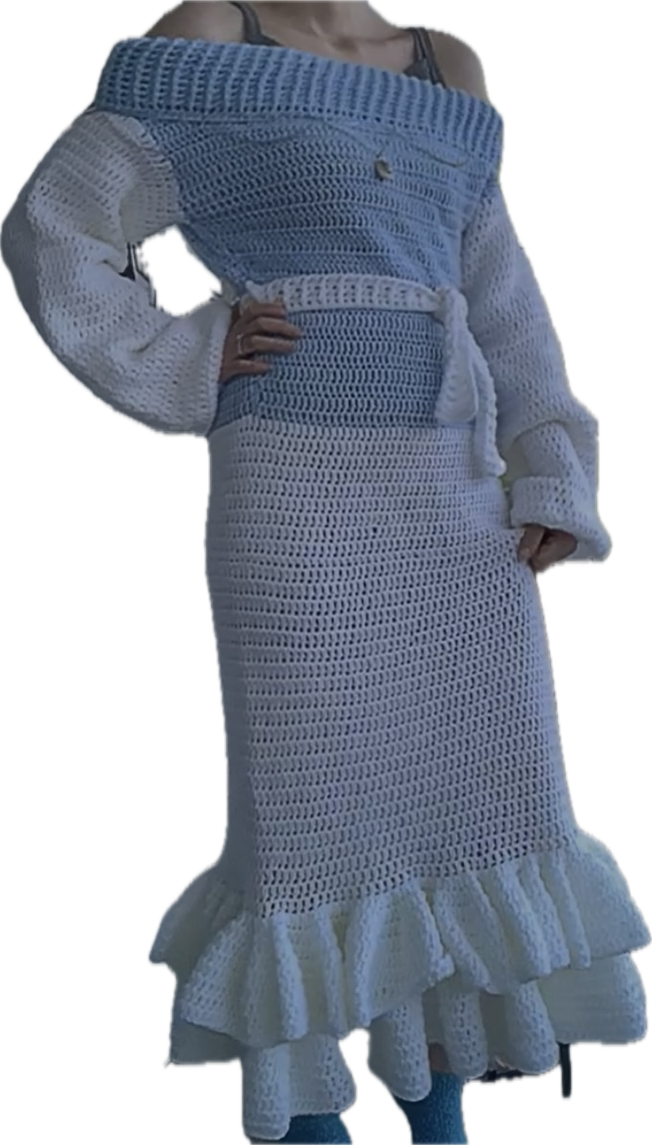Two rows on bottom of dress that are flare/wavy.